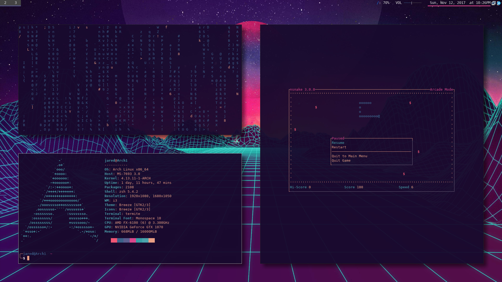 On both my desktop I use the i3-gaps tiling window manager. I’ve switched to a tiling WM for simplicity, performance, and biggest of all: Speed. I use i3-gaps instead of i3 because gaps.
