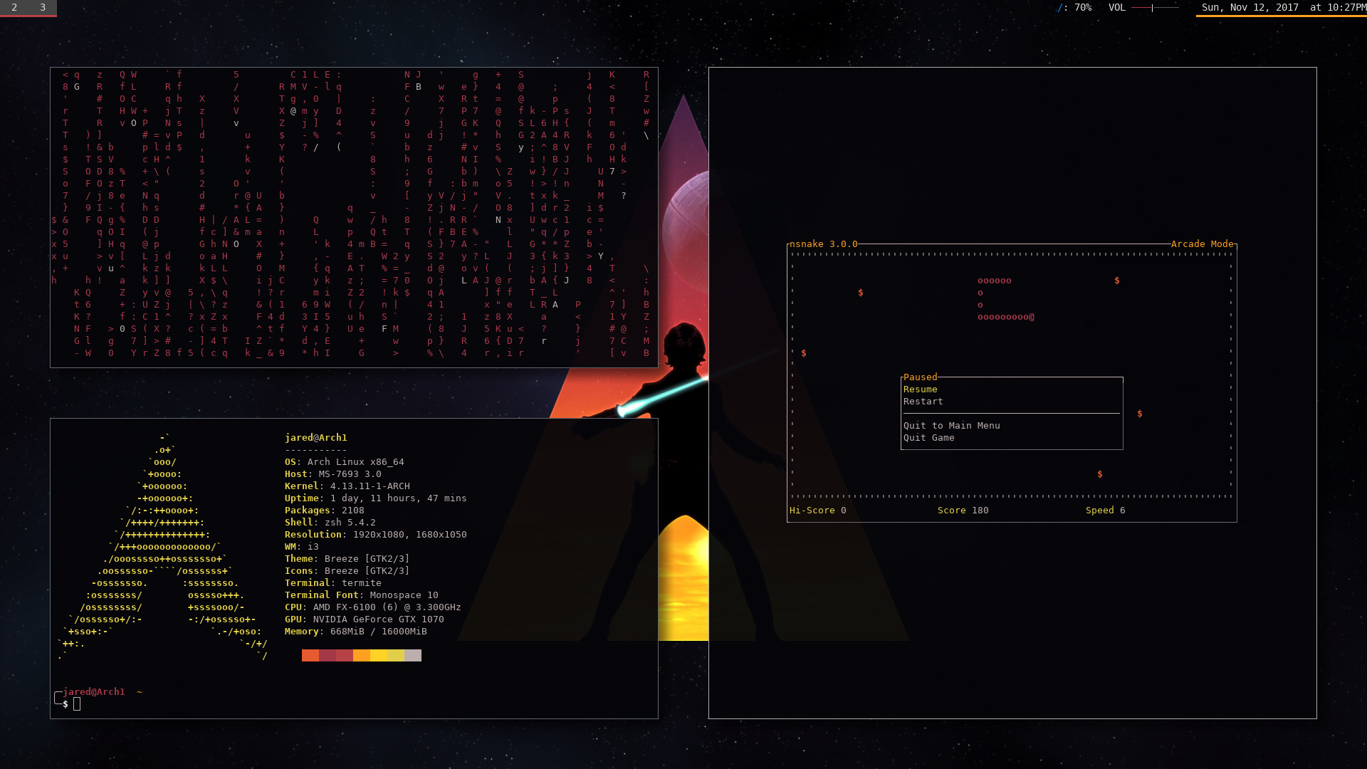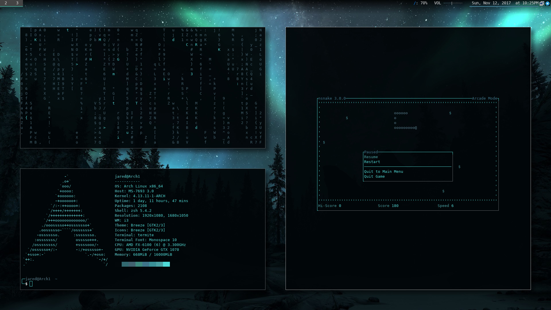 | OS: | Arch Linux on Desktop, Manjaro on Laptop |